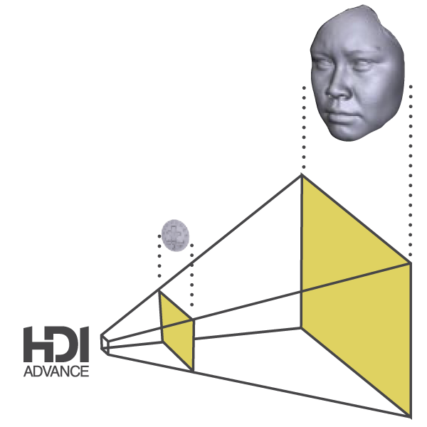 These types of 3D scanners will have the ability to move the cameras in different positions to create different fields of view. Using the HDI Advance as an example, the scanner can create three different fields of view by moving the cameras into different preset camera positions.