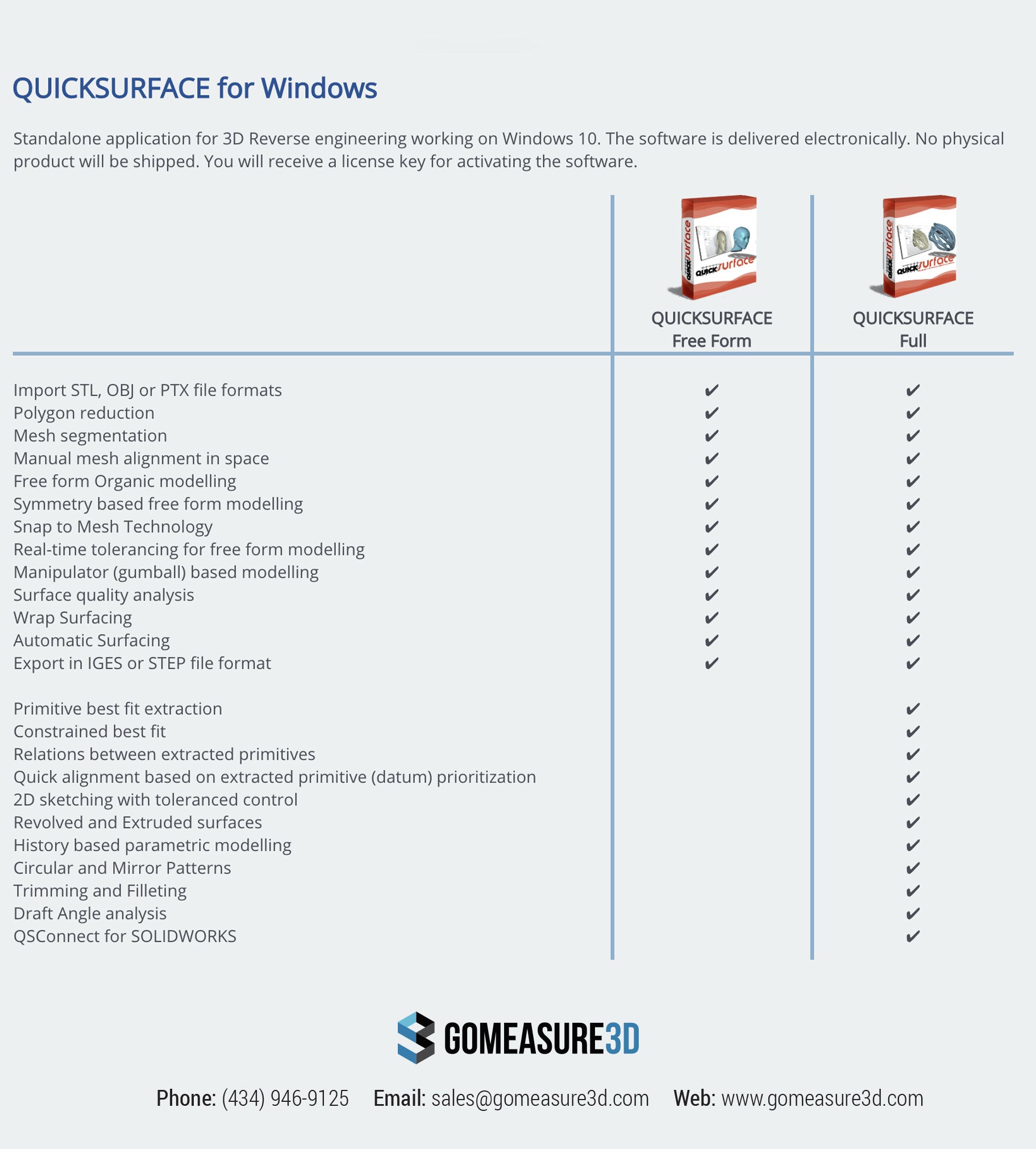 What is the difference between QuickSurface Freeform versus Full version? | Learn More |