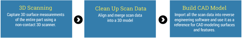 Reverse engineering using this method is a sequential process. You first have to capture all 3D scans of the entire part with a 3D scanner, then clean up the scan data before you start the process of creating the CAD model. The scan data is used as a visual reference to sketch the features of the part until the final CAD model is completed. Similar to using a portable CMM, sometimes a plugin is required to provide extra tools inside CAD modeling software (e.g. SOLIDWORKS) to help with the reverse engineering process (e.g. XTract3D or Geomagic for SOLIDWORKS).