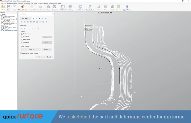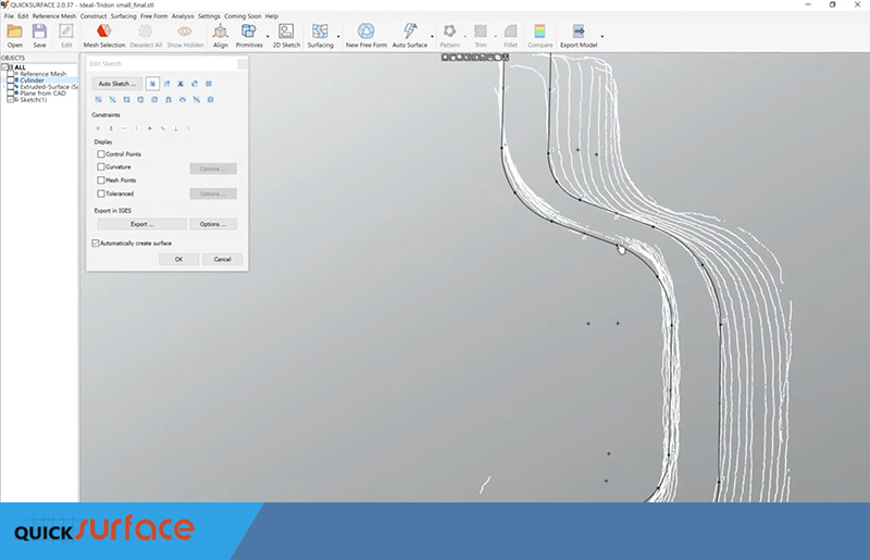 QUICKSURFACE standalone reverse engineering software was used for this demo.