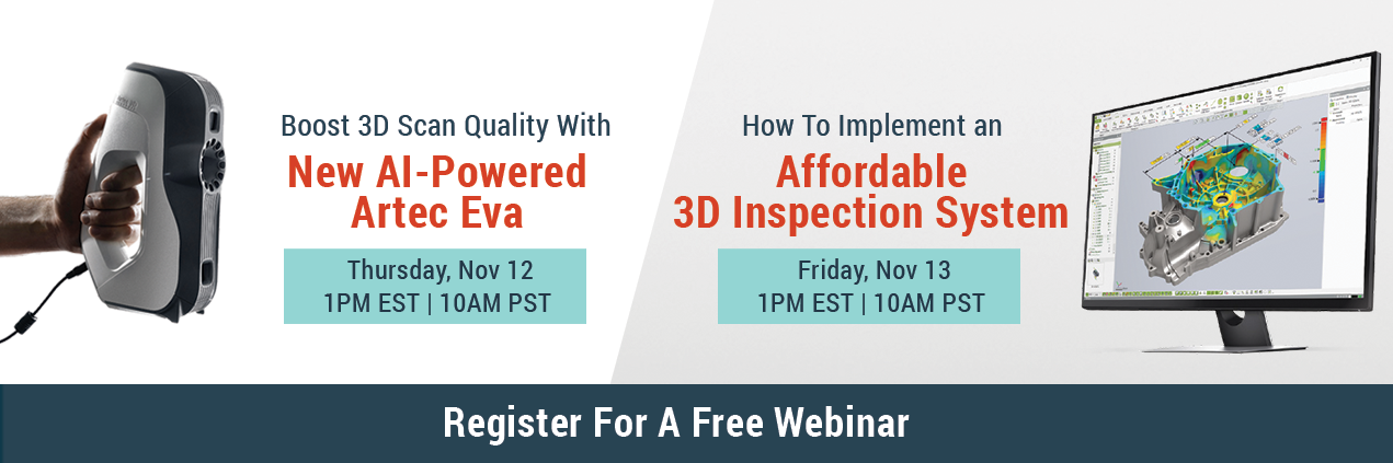 Showcasing the latest 3D technologies recently released in 2020: AI-Powered Artec Eva handheld 3D scanner and Geomagic Control X Essentials affordable inspection software. Webinars are now available to watch on demand.